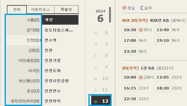 상영 일정과 자세한 정보를 원하시면 아래 롯데시네마, CGV, 메가박스에서 원하시는 영화관의 웹사이트를 방문하시어 "예매"를 선택하시면 됩니다.