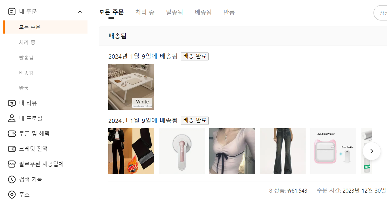 그리고 배송은 2024년 1월 9일에 받았으니 배송까지 총 10일이 걸렸습니다.